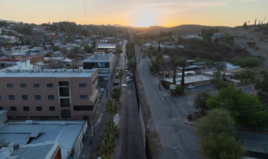 2025年4月1日,墨西哥索诺拉州诺加莱斯市的墨美边境墙。(新华社/李梦馨)