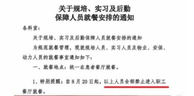 医院通报禁止规培生进餐厅吃饭 管理调整引发关注