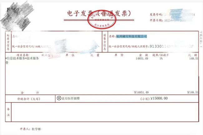 天眼查显示,杭州碰付科技有限公司成立于2024年11月,注册资本200万元,法定代表人为杜学彬,持股100%。