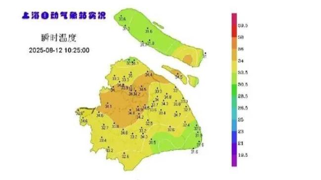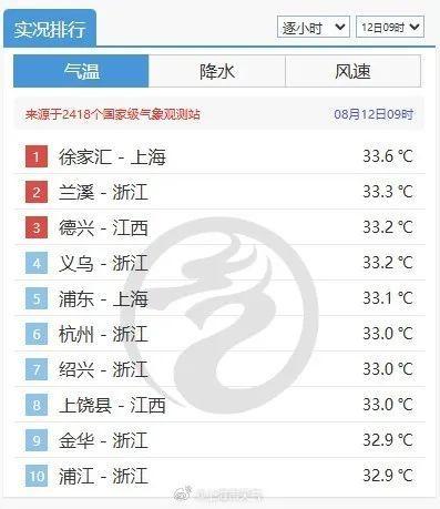 上午徐家汇再次登上全国高温榜首。副热带高压稳定,加上西南风带来的热浪,使得高温持续。今天上海以多云为主,云层较厚,但气温依然较高。徐家汇自动气象站记录到的实况气温达到35.2℃,并且午后到上半夜局部地区可能会有阵雨或雷雨,雨量可能达到大雨到暴雨级别。