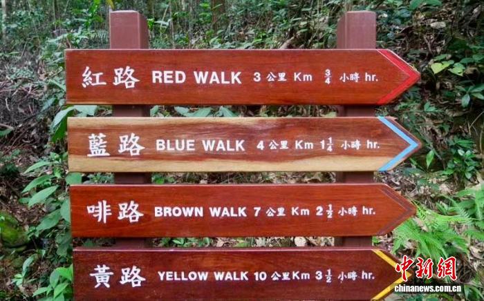 资料图:中国香港,一处郊野公园的路径指示牌清晰醒目,方便徒步者选择。中新网记者 孙自法 摄