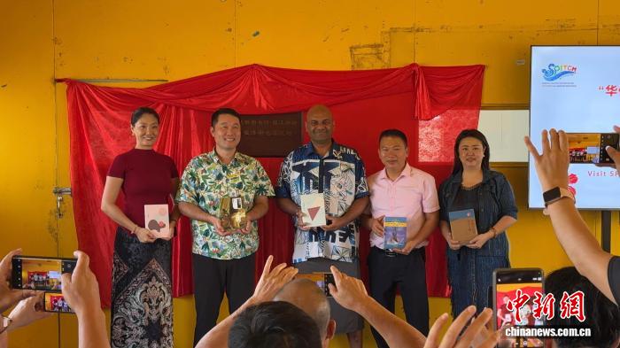 斐济西部总督Apolosi Lewaqai、多名斐济华侨华人代表出席揭牌仪式。