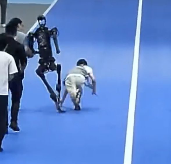 现场:宇树机器人埋头猛冲 撞翻友商操控员!