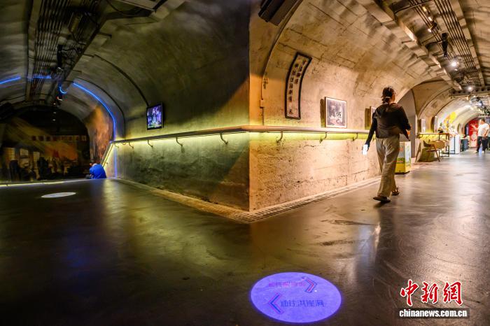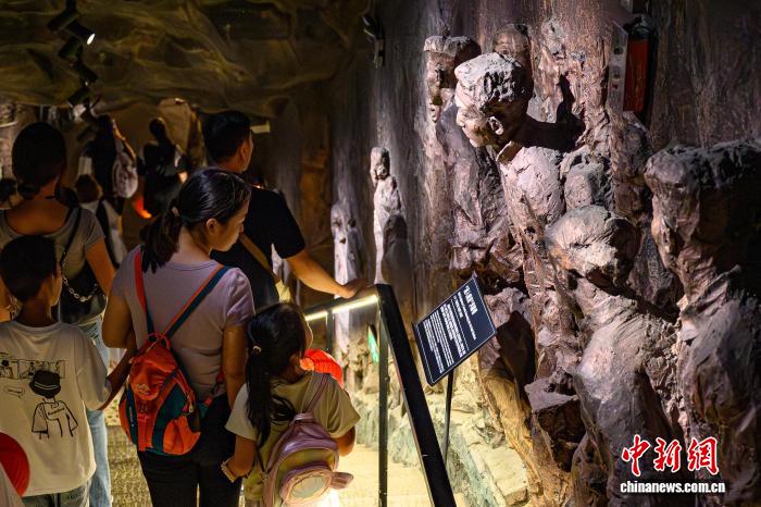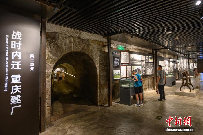 图为8月17日,游客在重庆建川博物馆中的兵工署第一兵工厂旧址博物馆参观,该馆选址在重庆九龙坡区谢家湾原“兵工署第一兵工厂旧址”的一处防空洞。中新社记者 何蓬磊 摄