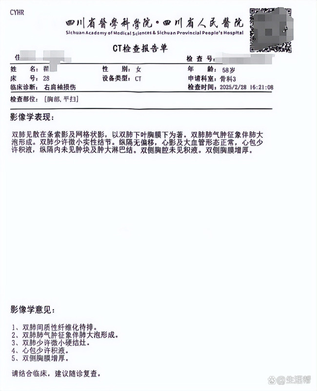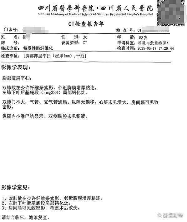 医院弄错CT 女子被误诊绝症服药3个月 家属质疑院方失误处理。8月18日,成都市民翟先生反映,其58岁的母亲翟女士在四川省人民医院就诊时发生误诊。由于另一名患者误入CT检查室,其影像被错误录入翟女士名下,导致翟女士被误诊为“特发性肺间质纤维化”并服药三个月。