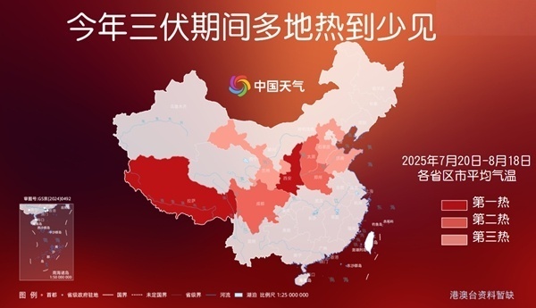 今年三伏从7月20日持续至8月18日,为期30天,尽管是“短版三伏”,但热度异常突出。据中国天气网统计,今年三伏全国平均气温达23.21℃,仅次于2024年的23.24℃,为史上第二高。陕西、西藏为同期最热,四川、河南、山西为同期第二热,甘肃、山东、河北为同期第三热。