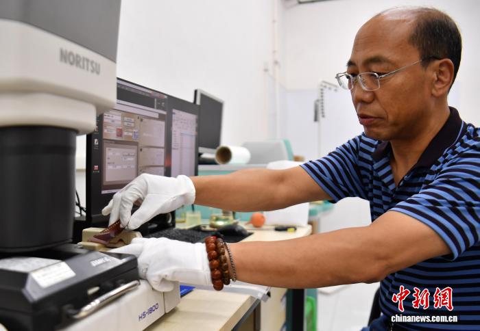 8月20日,河北省保定市竞秀区中国乐凯集团有限公司,工作人员进行胶卷扫描作业。作为始建于1958年、中国“一五”计划重点项目保定电影胶片厂的传承者,乐凯曾创造多项“中国第一”——首盘黑白电影胶片、首盘彩色电影胶片、首盒黑白胶卷均诞生于此。胶卷时代,它与柯达、富士形成“三足鼎立”,被誉为“中国胶卷之王”,如今其彩色胶卷“焕新”归来。中新社记者 韩冰 摄