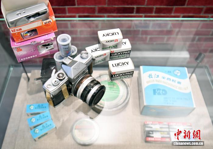 8月20日,河北省保定市竞秀区中国乐凯集团有限公司,乐凯展览馆内展示的老式相机与老胶卷。作为始建于1958年、中国“一五”计划重点项目保定电影胶片厂的传承者,乐凯曾创造多项“中国第一”——首盘黑白电影胶片、首盘彩色电影胶片、首盒黑白胶卷均诞生于此。胶卷时代,它与柯达、富士形成“三足鼎立”,被誉为“中国胶卷之王”,如今其彩色胶卷“焕新”归来。中新社记者 韩冰 摄