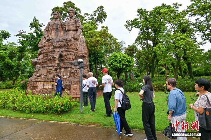海外华媒海南采访行:雕塑前追忆华侨回国支持抗战