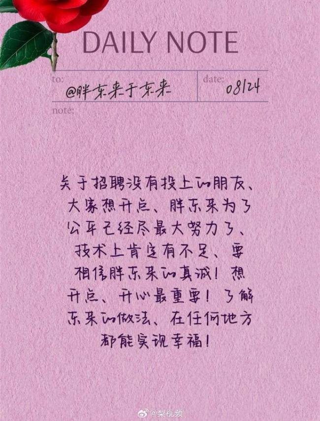 于东来安慰招聘没投上的朋友。8月24日,于东来发文表示,对于未能成功应聘的朋友,希望大家能够理解。胖东来为了确保招聘过程的公平性已经尽了最大努力,尽管技术上可能存在不足,但请大家相信公司的真诚,并保持乐观心态。