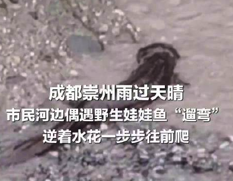 8月22日,成都崇州文井江镇雨过天晴,市民在河边偶遇一只野生娃娃鱼“遛弯”,逆着水花一步步往前爬。