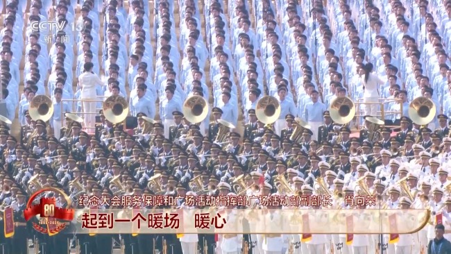 今天上午举行的纪念大会上,四首暖场歌曲在天安门广场上营造了庄重的氛围,用艺术语言展现了抗战的历史画卷。这些歌曲的选择背后有着深思熟虑。