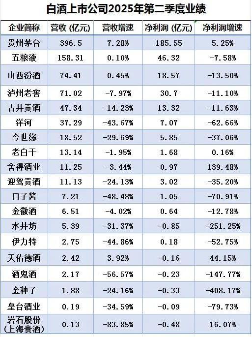 2025年白酒上市公司上半年业绩悉数披露,单看第二季度财报更像一面镜子,照见行业当下的发展现状与趋势走向。