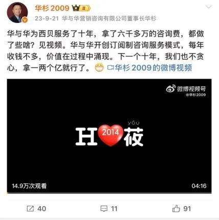 这场风波的升级发生在9月14日晚间,罗永浩在“交个朋友”直播间中将炮火对准了西贝背后的营销咨询服务商——华与华。