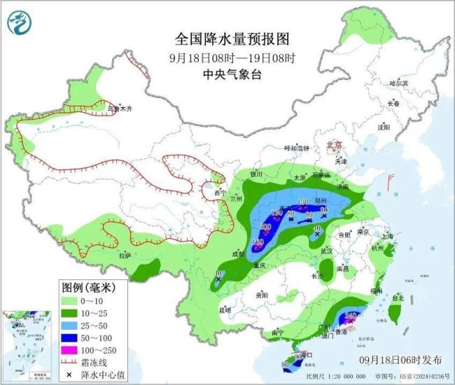 中央气象台9月18日06时继续发布暴雨黄色预警:预计今天,甘肃东南部、陕西中南部、山西南部、四川盆地中东部、重庆西部、湖北北部、河南中北部、山东西南部、福建南部、广东东部和西南部沿海、海南岛等地部分地区有大到暴雨。其中,陕西南部、河南西部、四川盆地东部、广东东南部沿海等地部分地区有大暴雨(100至240毫米)。上述部分地区伴有短时强降水(最大小时降雨量20至50毫米,局地可超过70毫米),局地有雷暴大风等强对流天气。