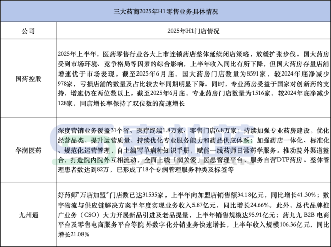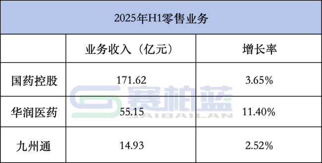 2025年H1三大药商零售业务均实现了增长,尤其是华润医药增长明显,达到11.4%。