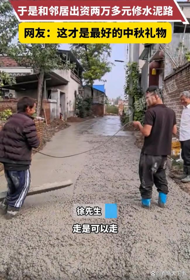 这种主动的行为赢得了网友们的赞赏,认为这是打开了格局。这条新修的水泥路不仅改善了村民的出行条件,也让整个村子变得更加安全和体面。