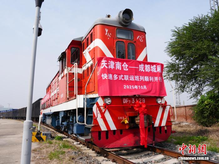 据天津铁路物流中心南仓营业部经理舒树轩介绍,天津南仓至成都城厢快速多式联运班列是铁路四季度调图后新增的运输产品,主要运输天津本地生产的太阳能板、汽车配件产品及高附加值日用品,计划每月开行20列以上。