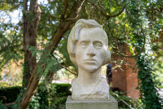 这是9月27日在波兰热拉佐瓦沃拉的肖邦出生地博物馆拍摄的肖邦雕像。新华社记者夏原一摄