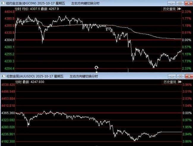 上周五夜盘,贵金属市场经历了显著波动。17日COMEX黄金白盘一度刷新历史新高至4392美元/盎司,但夜盘迅速跳水跌超2%,最低下探至4229.7美元/盎司,振幅高达4.55%;与此同时,伦敦金当日收跌2.69%,一度失守4200美元。自年初以来,黄金累计涨幅已超过60%。业内机构提醒,黄金在快速上涨后积累了大量盈利仓位,需注意可能的调整和波动加剧。