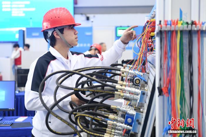 资料图为今年4月16日,湖南省第二届职业技能大赛中,选手进行工业机械项目的比赛。中新社记者 杨华峰 摄