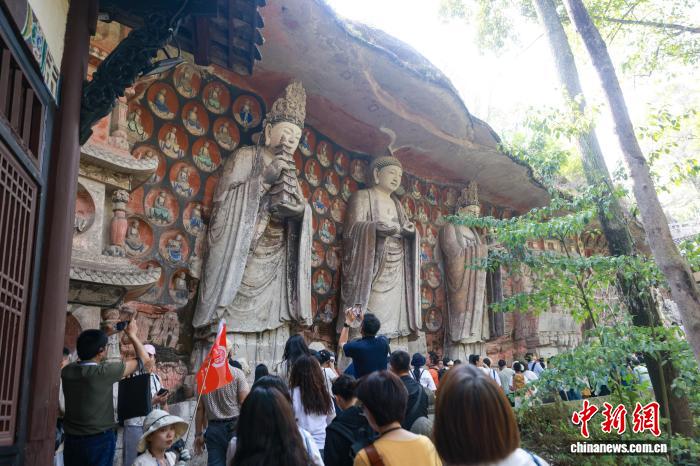 2024年9月27日,游客在重庆参观大足石刻。中新社记者 贾天勇 摄