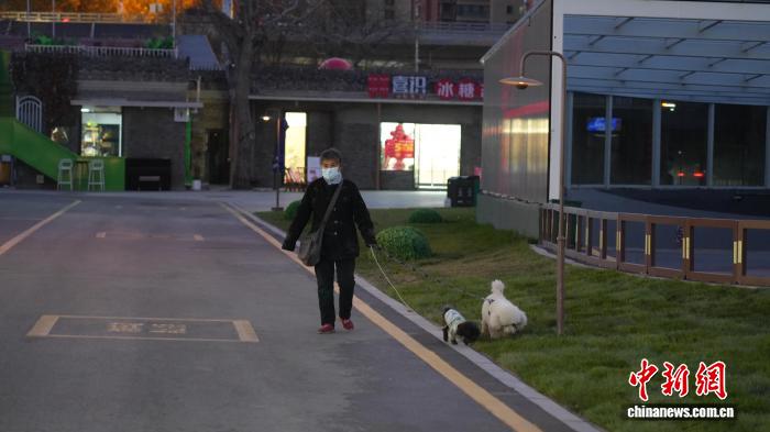 图为11月27日,民众牵着宠物在“织音1953”遛弯。胡凯迪 摄