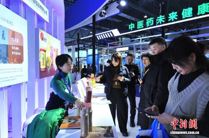 2024年12月8日,2024长春国际医药健康产业博览会上,展商在推介商品。(资料图) 张瑶 摄