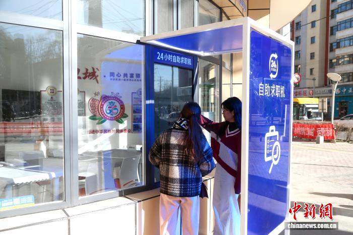 市民在数智零工驿站的24小时自助求职机上寻找就业岗位。张忠苹 摄