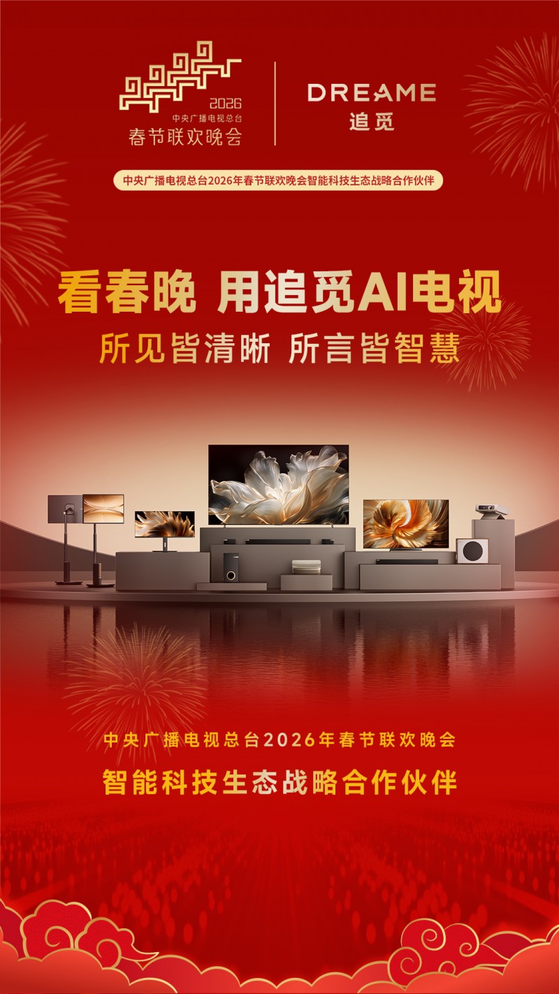 追觅电视刚刚发布官宣海报,追觅科技成为“中央广播电视总台2026年春节联欢晚会智能科技生态战略合作伙伴”。这意味着包括追觅AI电视等在内的更多智能家居产品,获得了总台春晚的认可,势必也会被全球众多消费者看见。