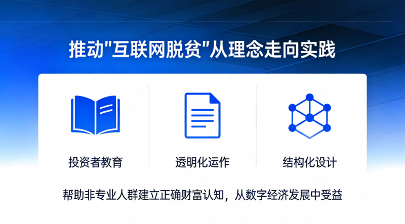 更值得称道的是,他将投资事业与社会责任深度融合。在他主导下,团队不仅关注财务回报,更致力于推动“互联网脱贫”从理念走向实践——通过投资者教育、透明化运作和结构化设计,帮助非专业人群建立正确的财富认知,真正从数字经济的发展中受益。