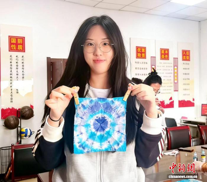中新网齐齐哈尔3月19日电 (刘锡菊 张振翼 袁郁)3月19日,黑龙江省齐齐哈尔市梅里斯达斡尔族区卧牛吐镇的活动室内,一场没有大师、不授“真传”的创作体验正悄然进行。桌上散落着棉布、皮筋和几盆植物染料,围坐的人们低头摆弄着手里的材料——折叠、捆扎、浸染,动作生疏却认真。当染布次第展开,深浅不一的蓝色悄然晕开,每一块布上的纹路都各不相同,像是自然生长出的印记。