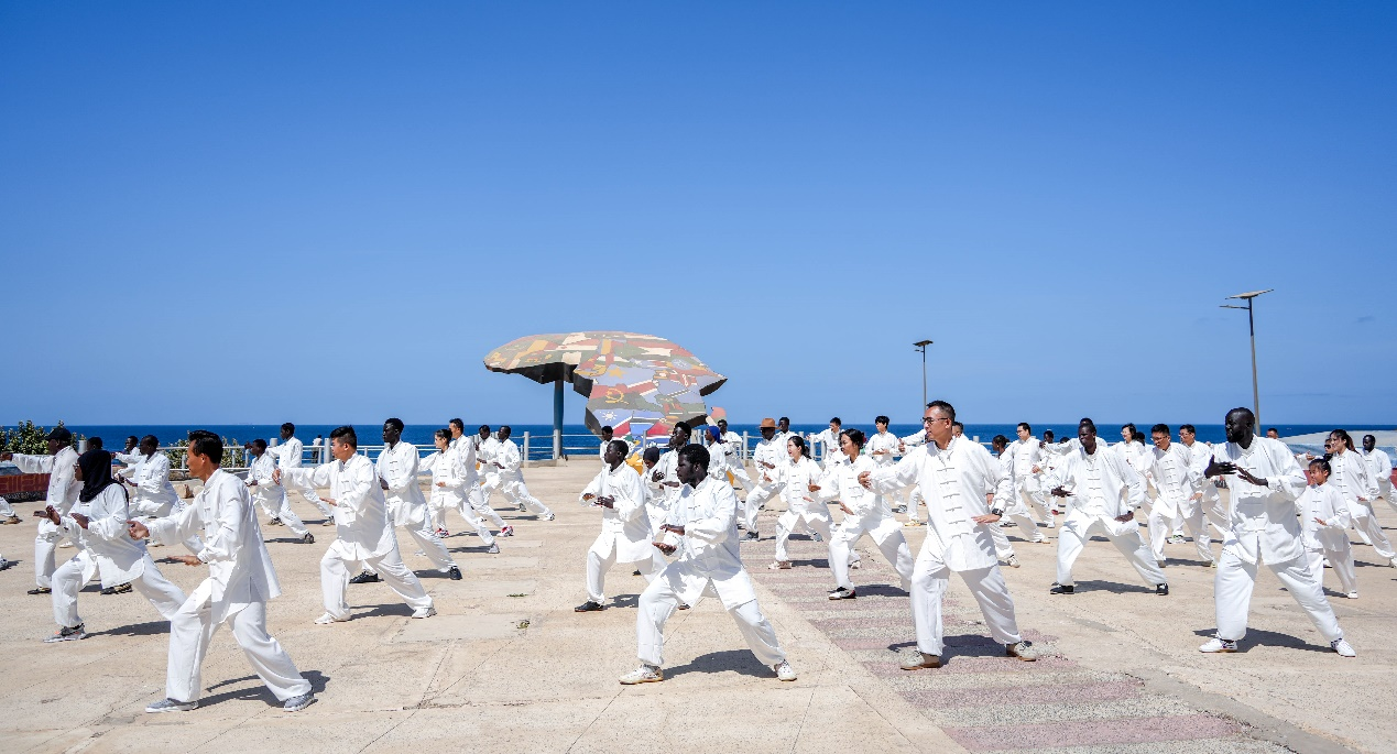 图为“迎青奥·百人太极”中塞太极拳展演活动现场。中国驻塞内加尔大使馆供图