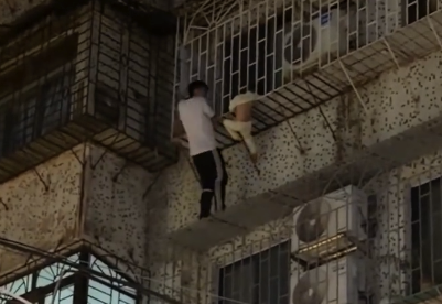 2025年12月24日19时40分,广州市天河区员村街道天福社区白马花园一居民楼内,一名幼童不慎被卡在四楼窗外防盗网缝隙间,身体大半悬于窗外,随时可能坠落。路过此处的郭颖昕发现险情后,迅速拨打报警电话,同时查看周边环境,确认可借助外墙防盗网攀爬施救后,立即徒手沿着小区外墙防盗网向上攀爬,一步步向被困儿童靠近。