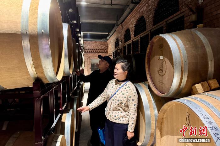 4月3日,宁夏贺兰山下沃尔丰酒庄,游客在酒庄参观。中新社记者 李佩珊 摄