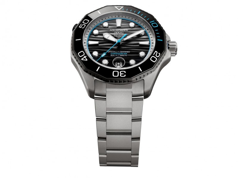 泰格豪雅竞潜系列 Professional 500 日历型腕表在延续这一系列传奇基因的同时,也在专业潜水腕表领域中,开创出属于自己的独特地位。全新时计专为挑战深海极限匠心打造,拥有 500 米专业防水性能。表壳与表链均采用2级钛金属材质,带来了极致轻盈的佩戴体验。腕表重量仅为 120 克,佩戴轻盈贴腕,却不失硬朗强悍的专业工具腕表风范。这种材质的应用,赋予了腕表卓越的抗冲击与耐腐蚀性能。每一款腕表均以不同的色彩与纹理设计,彰显各具特色的鲜明个性。