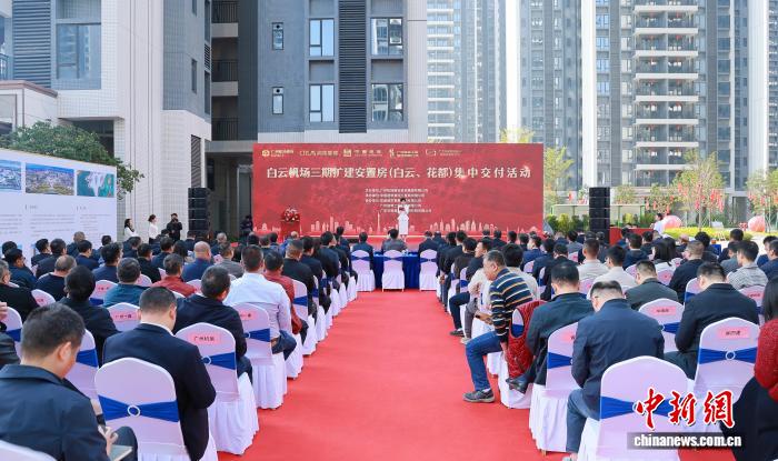 中新网广州12月29日电 (郭军 林乐丹)12月29日,广州机场建设投资集团在白云机场三期建南安置区举行集中交付活动,新一批100栋共9575套安置房钥匙郑重交接,标志着白云机场三期安置区项目“保主体、保刚需”建设移交任