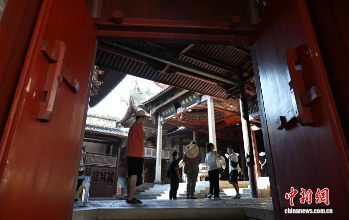 图为9月14日,游客在古田临水宫祖庙参观。中新社记者 吕明 摄 图为9月14日,古田临水宫祖庙内景。中新社记者 吕明 摄