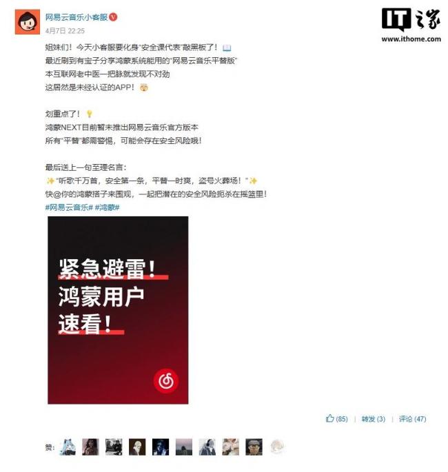 近日,关于“网易云音乐迟迟不适配鸿蒙”一事引发热议。对此,网易云音乐回应称,目前客户端暂未适配鸿蒙系统。谈及还未适配的原因,网易云音乐表示,产品和技术团队正在努力对应用进行进一步优化和完善,以确保后期上架后能提供更稳定、更流畅的使用体验