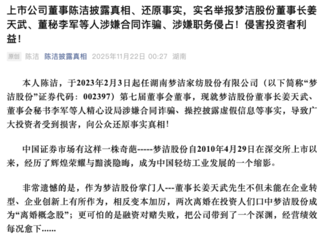 2025年11月25日,一场上市公司的内斗,在社交媒体扩大升级。