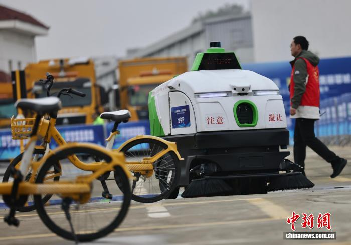 10月29日,成都市首届无人驾驶环卫清扫设备技能竞赛在蓉举行,多台无人驾驶环卫车在模拟城市道路的赛场上有序穿梭、精准作业,全面展示“智慧清洁”系统在真实场景下的综合能力。图为一辆参赛车在进行动态避障比赛。
