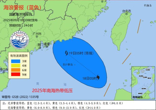 国家海洋预报台今天早上发布海浪和风暴潮双蓝色警报。预计今天上午到明天上午,南海东北部将出现3到3.8米的大浪区;广东东部近岸海域将出现2到3.3米的中浪到大浪。广东潮州到深圳沿海将出现30到80厘米的风暴增水