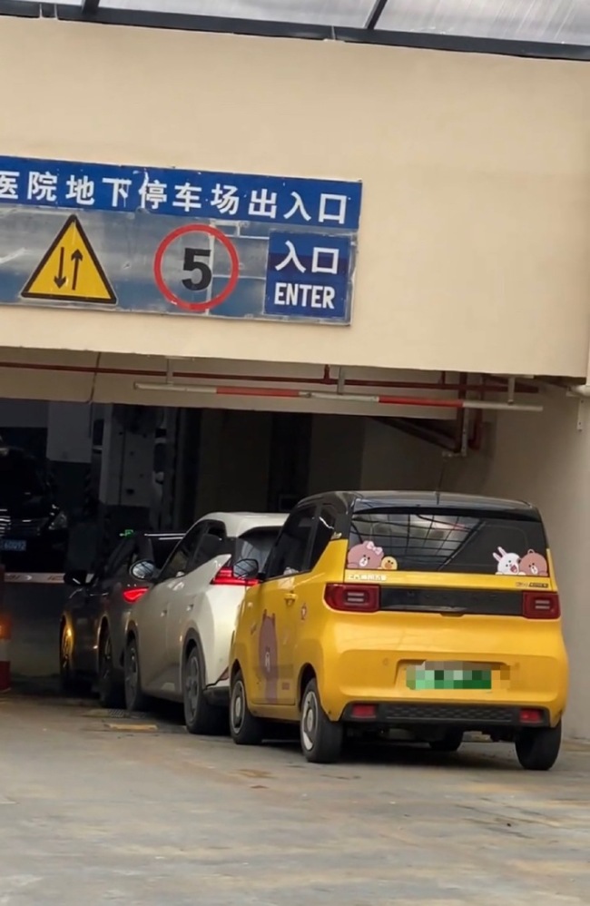 11月5日,网友爆料称:广西桂林。某医院的停车场出入口处发生了三车追尾相撞的交通事故。...