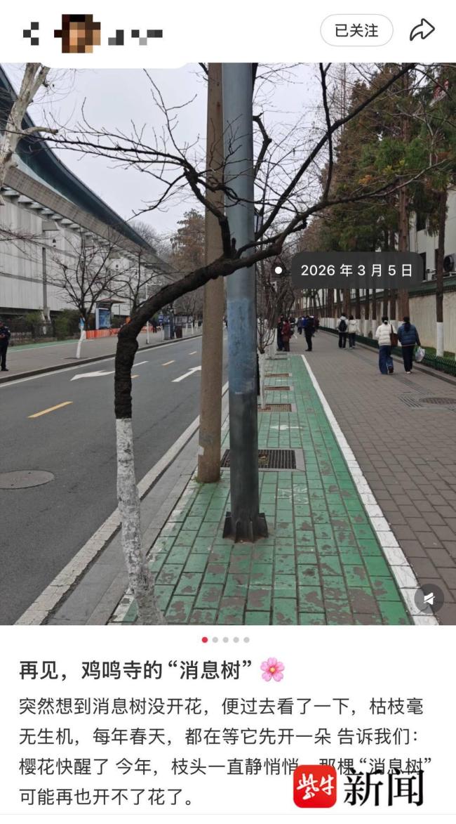 近日,南京鸡鸣寺旁被市民称作樱花季“消息树”的树木未如期开花,引发网友猜测“树已枯死”。记者实地探访后,咨询了南京资深园林从业者,专家回应称,从目前枝桠状态来看,树体并未枯死,未如期开花主要受近期气温波动影响