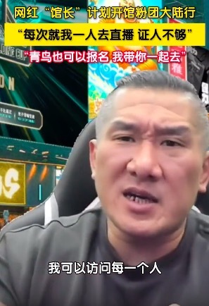10月13日晚,中国台湾网红“馆长”在直播中称计划开“馆粉团”开启大陆行直播。其表示,“每次就我一人去直播,证人不够,想在每个城市都开这种旅游直播,青鸟也可以报名,我带你一起去。”他同时还强调,这个团不是盈利性质的旅行团,这是好朋友约着出去...